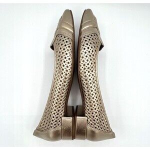 French Soles FSNY Leather Flats Champagne Metallic Laser Cut Square Toe 8-8.5/39