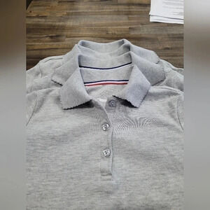 French Toast Bundle of 4 Girls Uniform Polos. In good used condition! No holes or rips just some deodorant discoloration on all 4 polos. Can prob be stain treated! Cute flower buttons and collar trim detail!