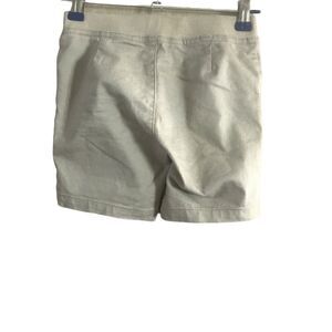 French Toast girls' uniform khaki shorts, size 6. The material is 71% cotton, 26% polyester, and 3% elastin. Excellent condition with no issues. P80D20