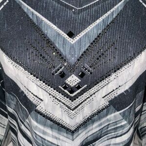 French blue women M v-cut multicolor 3/4 sleeve blouse w/decorative studs