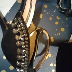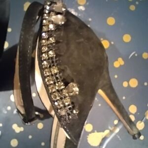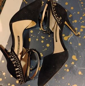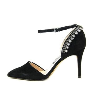 French connection "Eleni" suede bejeweled ankle strap pumps