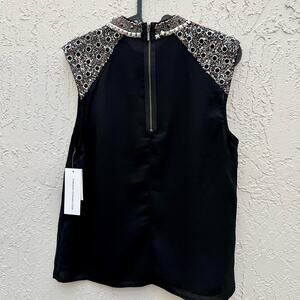 French connection black dressy sleeveless top embellished 8 new with tags