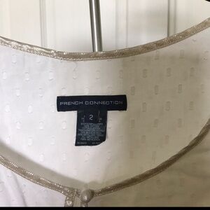Soft French connection boho bohemian top in white with gold trim..very nice fit ..perfect to wear with jeans or denim shorts and a floppy hat