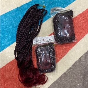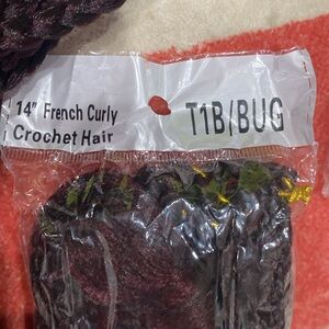 Stylish crochet hair extensions in an ombre deep burgundy shade. Perfect for adding volume and color.