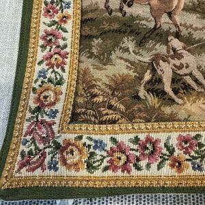 French style VTG Tapestry Wall Hanging Cottagecore Country Cottage Dog Horse