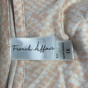 French Affair Top, Long Sleeve Crop Style, Size 1X, Peachy Pink and Cream