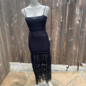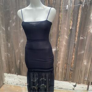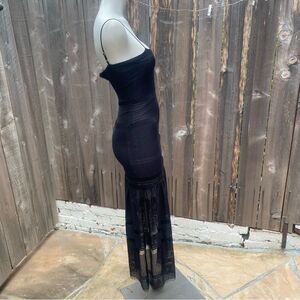 French Connection Black mesh Ruched Bodycon Maxi Dress size 0