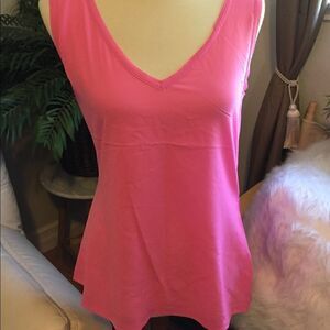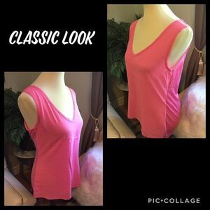 Gorgeous! Silky soft! This pink V-Neck sleeveless blouse is super flattering slightly flowing yet hugs in the right places. Classic simple elegant dress it up or wear casual!