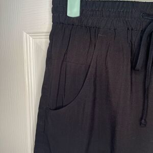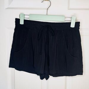 French Connection Pocket Drawstring Mini Shorts Black Size 0. Mini short length - just under 2.5” inseam. Side pockets and back pockets. Drawstring tie. Lightweight and breezy. Has silk like feel to the viscose fabric. Gently used Excellrnt Preowned Condition.