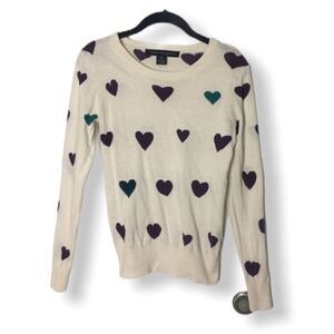 French connection cream pullover sweater with purple and teal hearts. Size x-small.