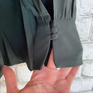French Connection Tie neck crepe. NWT size XS. Black. Cold shoulder long sleeve blouse. Tie around the neckline and deep V cutout. Double button cuff creating a ballon sleeve effect. Peplum hem with a relaxed comfortable fit.