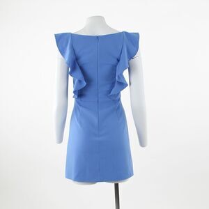 Channel Mod-era spunk with modern romance in this tailored minidress cut from sleek stretch fabric and topped by frilly straps.
