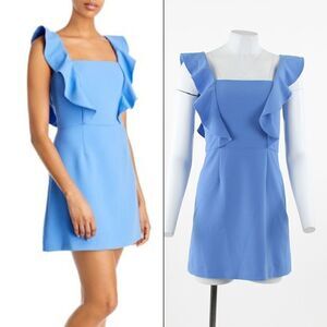 French Connection Whisper Ruffle Strap Minidress in Chalk Blue