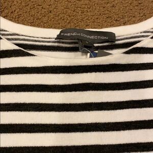 French Connection White & Grey Striped Sweater. Drop shoulder. Boat neck. Made of acrylic, polyamide, elastane. Size S. NWT.