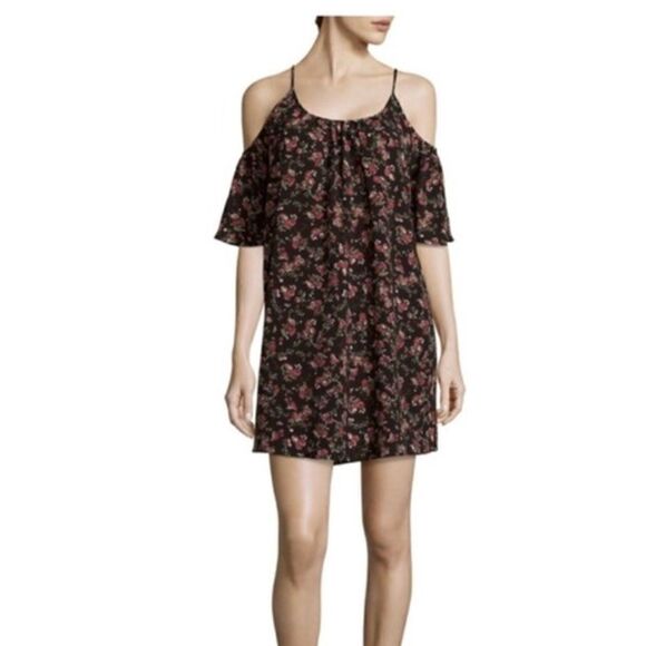 Flowery cold shoulder French Connection dress. It is lined underneath. Beautiful dress, would look cute with cowboy boots.