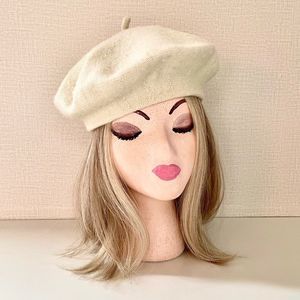 French Style Beret, Cream, Felted Wool like Feel, Classic Tail at Center…
