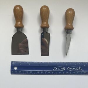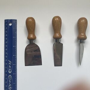 French Style Set of Three Cheese, Stainless Steel with Wood Handles
