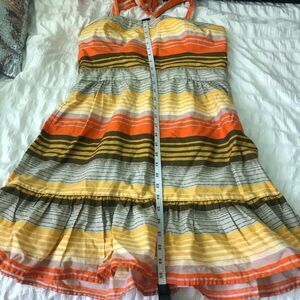 100% cotton, pre-worn condition. Super cute sundress. Halter neckline. See photos above for measurement’s.