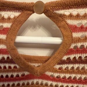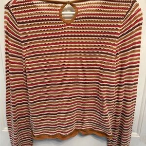 Frenchi Fall Tone Stripe Knitted Key Hole Back Long Sleeve Blouse Size Medium