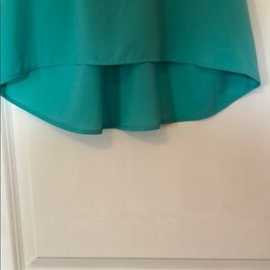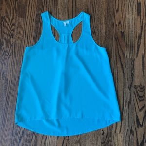 Seafoam green racer back tank, high low silhouette.