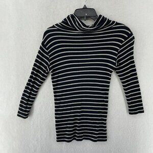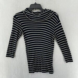 Frenchi Sweater Women's Sz S Black Knitted Striped Cowl Neck Stretch Pullover