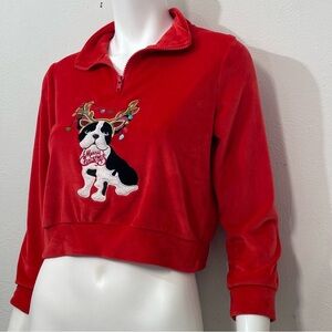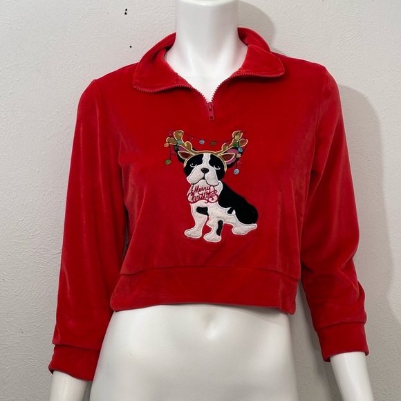 Frenchie ✨French Bulldog Boston Terrier Xmas Crop Sweater By POOF GIRL size L in excellent condition