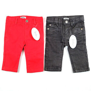 Frenchie Mini Couture Baby Unisex Holiday Chino Jean Pant Size 6mos Red Lot of 2