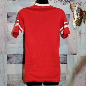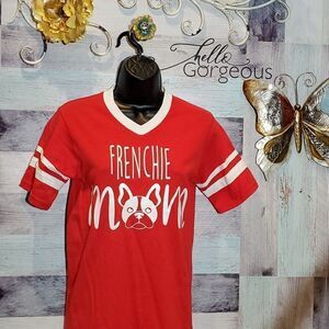 Frenchie Mom Sz Small Red White VNeck Tee T-Shirt Novelty Augusta 924 Bulldog