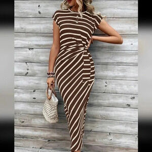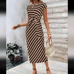 Frenchy Colorblock Striped Dress With Waist-Tie For Slim Fit