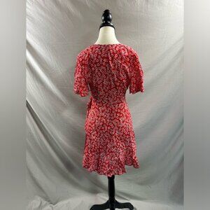 Frenchy Ditsy Floral Print Butterfly Sleeve Ruffle Trim Faux Wrap Dress