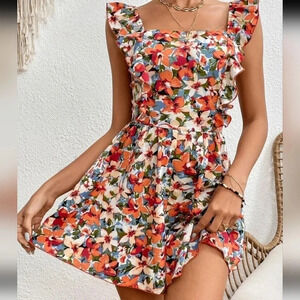 Frenchy Women Bow Backless Back Tie Leaf Edge Vacation Printed Red Summer