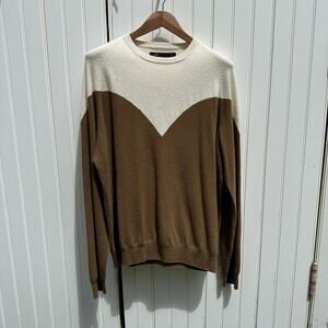 Frenckenberger Boyfriend Crewneck Sweater Small Cream Warm Brown 100% Cashmere