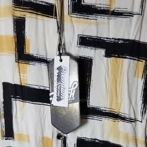 Fresh Black and Tan Casual Button Down Shirt with Geometric Pattern