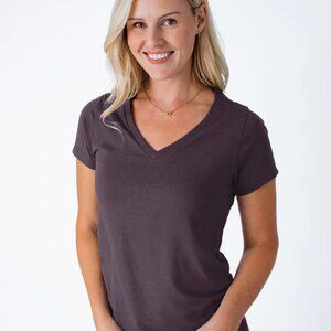 Fresh Clean Threads Women's V Neck, XS port red purple galaxy bundle