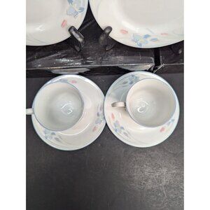 Fresh Flowers by Excel Iris 2 Footed Cups and Saucers with 2 Dessert Plate