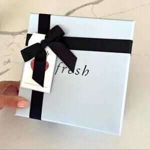 Fresh gift box with ribbon 6.5” by 6.5” by 3.5”.