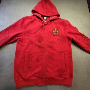 Fresh Kush Mens Large Red Full Zip Hoodie Embroidered All Over Print Sweatshirt