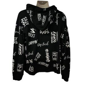 Fresh Laundry Mens Black All Over Graphic Print Hip Hop Streetwear Pullover Hoodie Sweatshirt 2XL Pocket Spell Out Animal Print Soft Fleece Stretch Lightweight Cotton Blend Unisex. Great Pre-Owned Condition Gently Worn. Ships from smoke free home.
