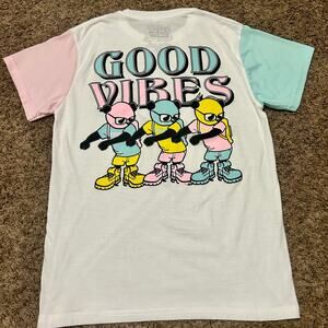 Fresh Laundry Bright Pink and Blue ‘Good Vibes’ Tee! Size Medium. In pre-owned/good condition!