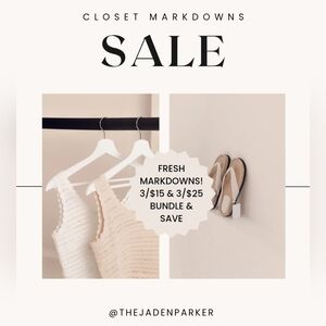 Fresh closet markdowns. Many items are 3 for $15 or 3 for $25.