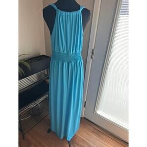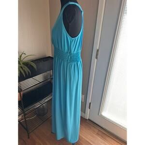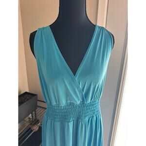 Fresh Of LA Turquoise Blue V neck Sleeveless Maxi Dress Size PL Events Wedding