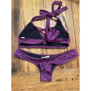 Fresh Peaches Swimwear Purple Criss-cross Halter Two-Piece Bikini Set Medium