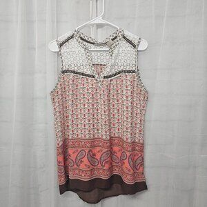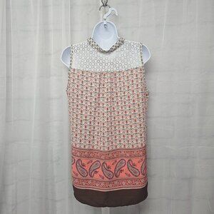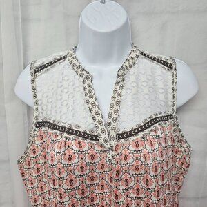 Fresh Pink Brown Tank Lace Boho Paisley Retro Festival M
