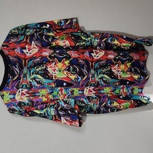 Vibrant graphic t-shirt with abstract design. Features a mix of colors for a bold look.