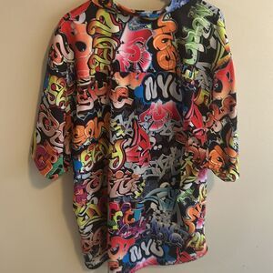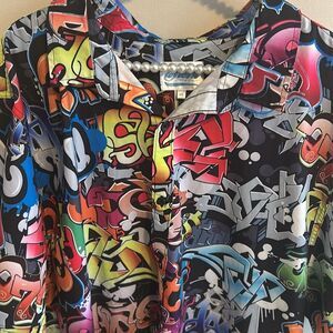 Fresh Prints of Bel Air BIG Graffiti Print Short Sleeve Button Down. Size 4XL