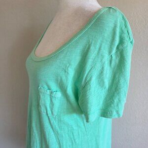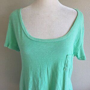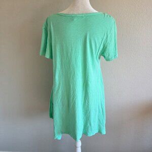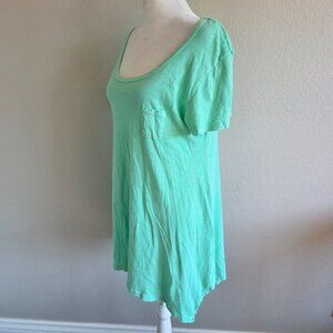 Long lightweight Fresh Produce cotton t-shirt - mini t-shirt dress - please note measurements - short sleeves - one open chest pocket - scoop neck -handkerchief hem - made in USA