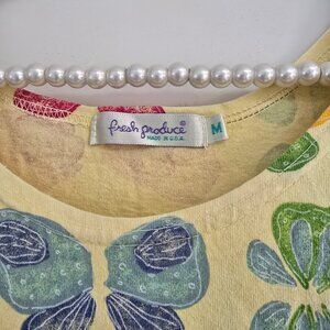 Fresh Produce 100% Cotton Yellow Butterfly Knee Length Dress with 2 Pockets, Med