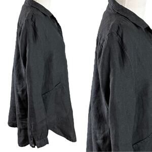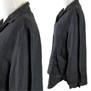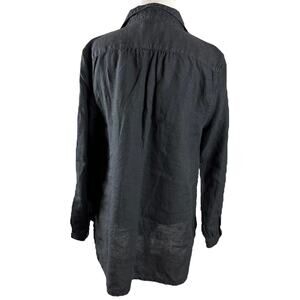 Fresh Produce 100% Linen Black Tunic Top Pockets Split Neck LagenLook Small NWT