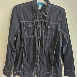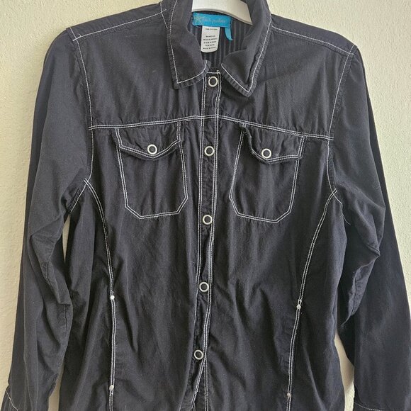 Fresh Produce 100% cotton black stretch Western Rodeo adj. back shirt pockets S