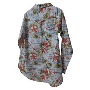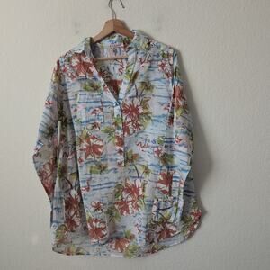 Fresh Produce 1/2 Button Up Long Sleeve Tunic Top Palms Flamingos Tropical Large